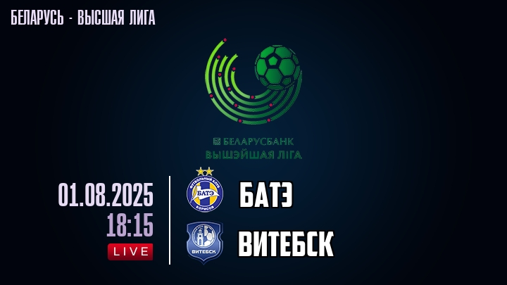 1 августа 2025 года, состоялась онлайн трансляция футбольного матча между футбольным клубом БАТЭ и футбольным клубом Витебск, проходящего в рамках Высшей лиги Беларуси.