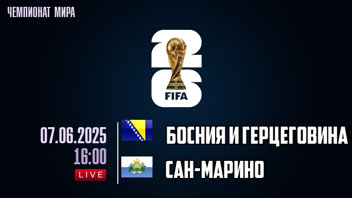 7 июня 2025 года, состоялась онлайн трансляция футбольного матча между сборной Боснии и Герцеговины и сборной Сан-Марино, проходящего в рамках Чемпионата мира по футболу.