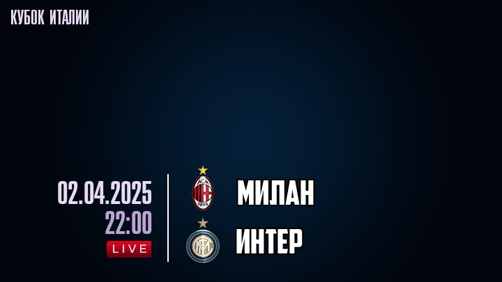 2 апреля 2025 года, состоялась онлайн трансляция футбольного матча между футбольным клубом Милан и футбольным клубом Интер, проходящего в рамках Кубка Италии.