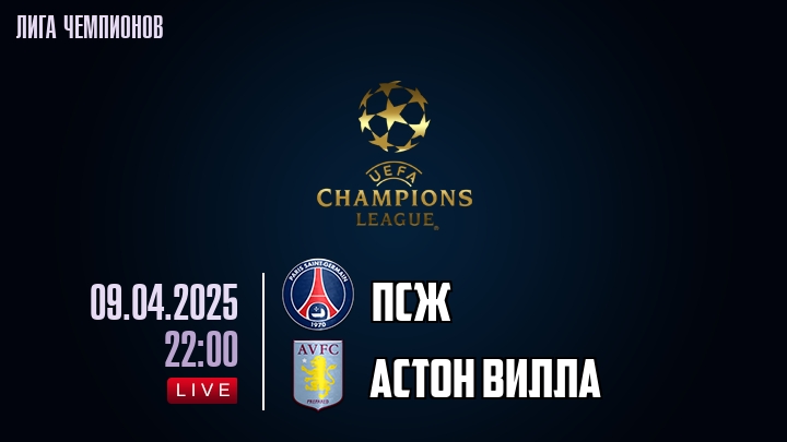 9 апреля 2025 года, состоялась онлайн трансляция футбольного матча между футбольным клубом ПСЖ и футбольным клубом Астон Вилла, проходящего в рамках Лиги Чемпионов.