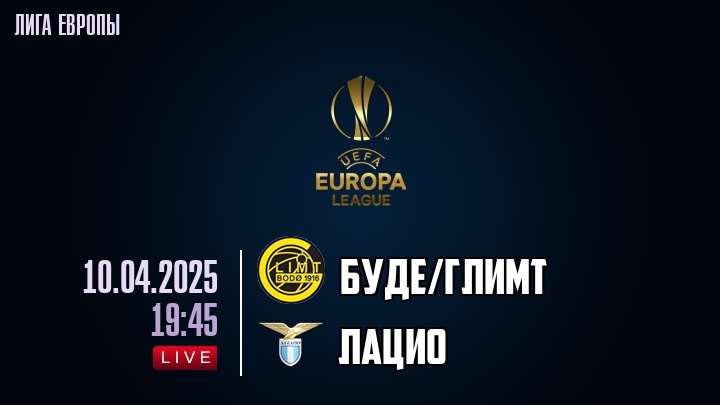 10 апреля 2025 года, мы предлагаем посмотреть онлайн трансляцию футбольного матча между футбольным клубом БудеГлимт и футбольным клубом Лацио, проходящего в рамках Лиги Европы.