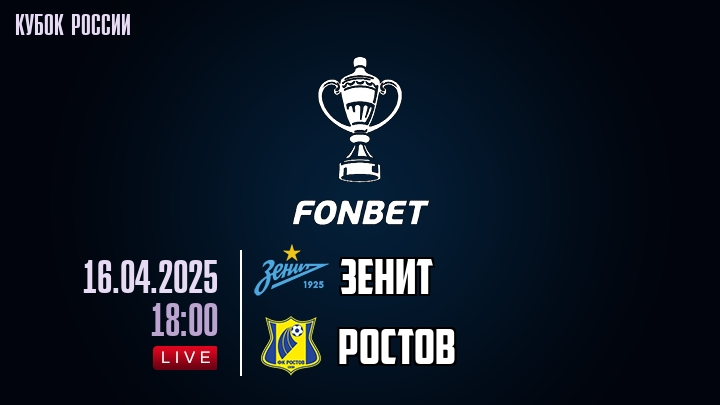 16 апреля 2025 года, состоялась онлайн трансляция футбольного матча между футбольным клубом Зенит и футбольным клубом Ростов, проходящего в рамках Кубка России.