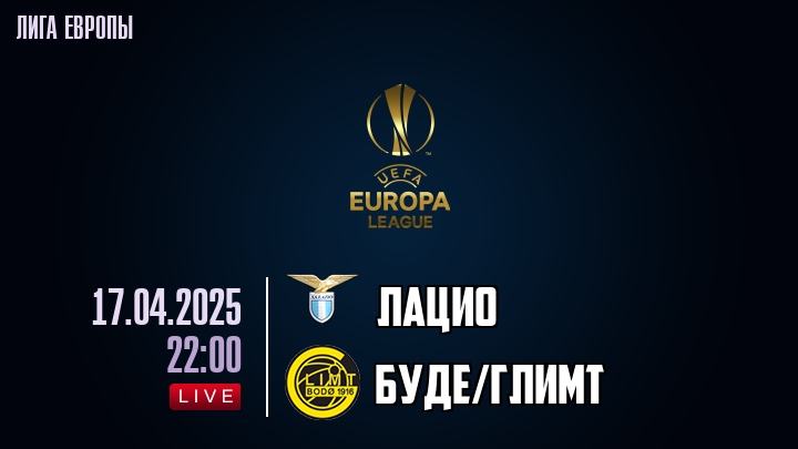 17 апреля 2025 года, состоялась онлайн трансляция футбольного матча между футбольным клубом Лацио и футбольным клубом БудеГлимт, проходящего в рамках Лиги Европы.