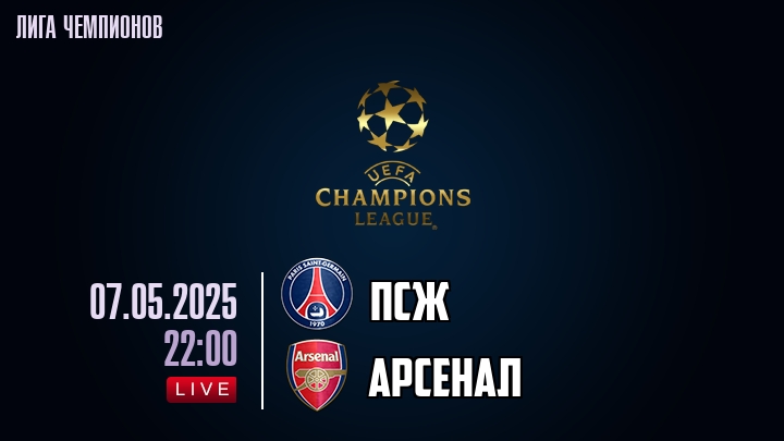 7 мая 2025 года, состоялась онлайн трансляция футбольного матча между футбольным клубом ПСЖ и футбольным клубом Арсенал, проходящего в рамках Лиги Чемпионов.