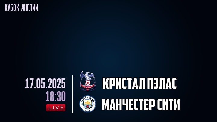 17 мая 2025 года, состоялась онлайн трансляция футбольного матча между футбольным клубом Кристал Пэлас и футбольным клубом Манчестер Сити, проходящего в рамках Кубка Англии.