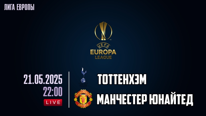 21 мая 2025 года, состоялась онлайн трансляция футбольного матча между футбольным клубом Тоттенхэм и футбольным клубом Манчестер Юнайтед, проходящего в рамках Лиги Европы.
