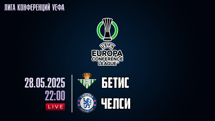 28 мая 2025 года, состоялась онлайн трансляция футбольного матча между футбольным клубом Бетис и футбольным клубом Челси, проходящего в рамках Лиги конференций УЕФА.