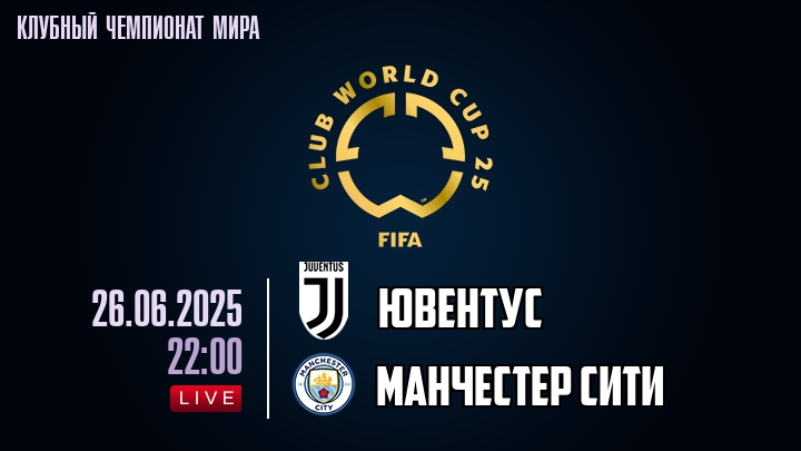26 июня 2025 года, состоялась онлайн трансляция футбольного матча между футбольным клубом Ювентус и футбольным клубом Манчестер Сити, проходящего в рамках Клубного чемпионата мира.