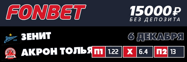 Узнать прогноз на матч Зенит — Акрон Тольятти, 6 декабря 2025