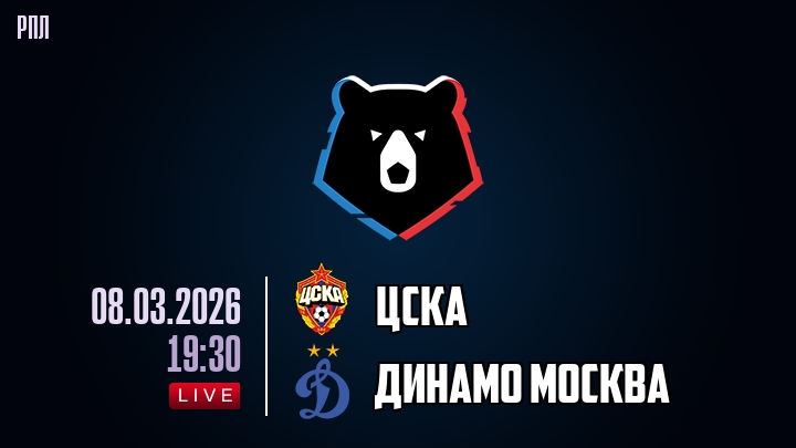 8 марта 2026 года, мы предлагаем посмотреть онлайн трансляцию футбольного матча между футбольным клубом ЦСКА и футбольным клубом Динамо Москва, проходящего в рамках чемпионата РПЛ.