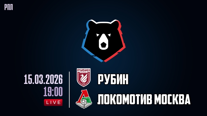 15 марта 2026 года, мы предлагаем посмотреть онлайн трансляцию футбольного матча между футбольным клубом Рубин и футбольным клубом Локомотив Москва, проходящего в рамках чемпионата РПЛ.
