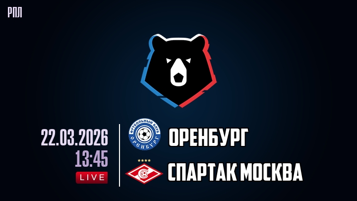 22 марта 2026 года, мы предлагаем посмотреть онлайн трансляцию футбольного матча между футбольным клубом Оренбург и футбольным клубом Спартак Москва, проходящего в рамках чемпионата РПЛ.