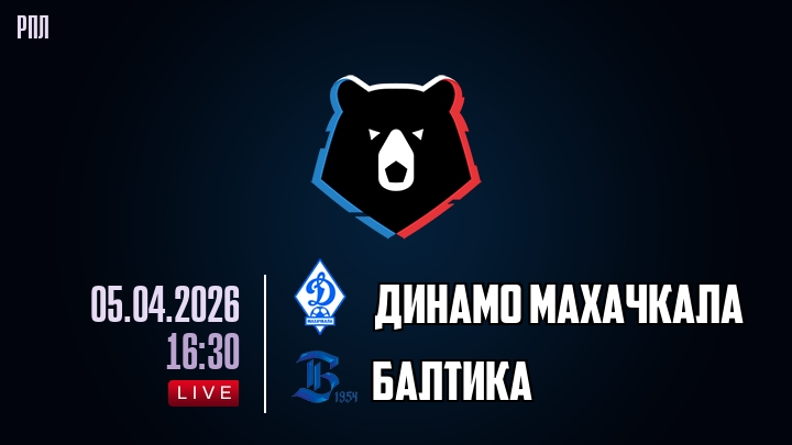 5 апреля 2026 года, мы предлагаем посмотреть онлайн трансляцию футбольного матча между футбольным клубом Динамо Махачкала и футбольным клубом Балтика, проходящего в рамках чемпионата РПЛ.