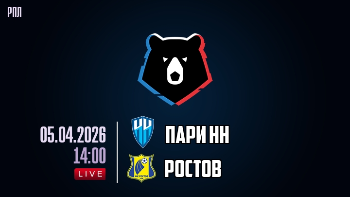 5 апреля 2026 года, мы предлагаем посмотреть онлайн трансляцию футбольного матча между футбольным клубом Пари НН и футбольным клубом Ростов, проходящего в рамках чемпионата РПЛ.
