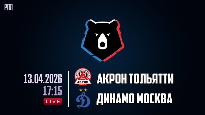 13 апреля 2026 года, мы предлагаем посмотреть онлайн трансляцию футбольного матча между футбольным клубом Акрон Тольятти и футбольным клубом Динамо Москва, проходящего в рамках чемпионата РПЛ.
