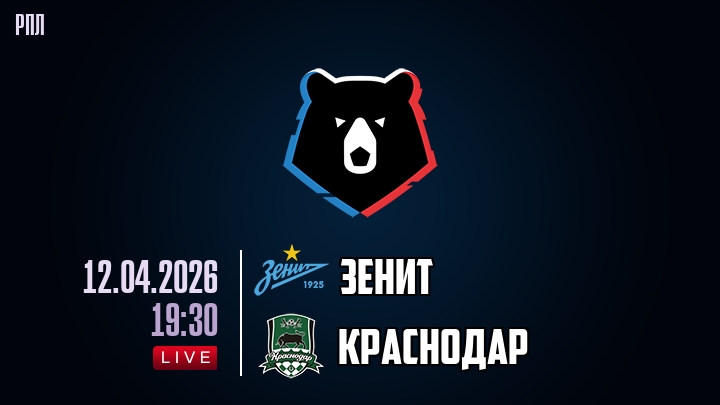 12 апреля 2026 года, мы предлагаем посмотреть онлайн трансляцию футбольного матча между футбольным клубом Зенит и футбольным клубом Краснодар, проходящего в рамках чемпионата РПЛ.