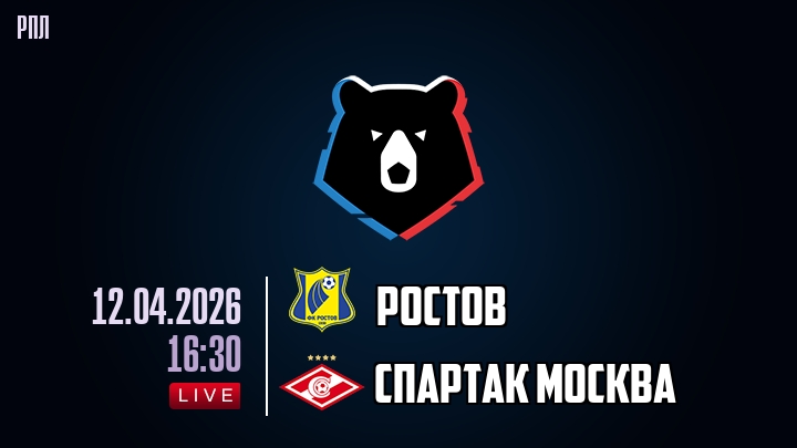 12 апреля 2026 года, мы предлагаем посмотреть онлайн трансляцию футбольного матча между футбольным клубом Ростов и футбольным клубом Спартак Москва, проходящего в рамках чемпионата РПЛ.