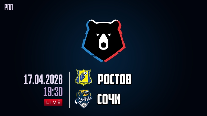 17 апреля 2026 года, мы предлагаем посмотреть онлайн трансляцию футбольного матча между футбольным клубом Ростов и футбольным клубом Сочи, проходящего в рамках чемпионата РПЛ.
