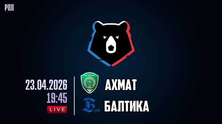 23 апреля 2026 года, мы предлагаем посмотреть онлайн трансляцию футбольного матча между футбольным клубом Ахмат и футбольным клубом Балтика, проходящего в рамках чемпионата РПЛ.