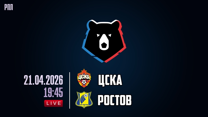 21 апреля 2026 года, мы предлагаем посмотреть онлайн трансляцию футбольного матча между футбольным клубом ЦСКА и футбольным клубом Ростов, проходящего в рамках чемпионата РПЛ.