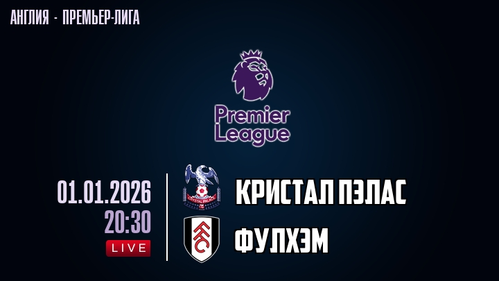 1 января 2026 года, мы предлагаем посмотреть онлайн трансляцию футбольного матча между футбольным клубом Кристал Пэлас и футбольным клубом Фулхэм, проходящего в рамках Премьер лиги Англии.