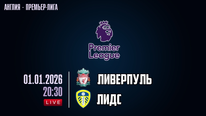 1 января 2026 года, мы предлагаем посмотреть онлайн трансляцию футбольного матча между футбольным клубом Ливерпуль и футбольным клубом Лидс, проходящего в рамках Премьер лиги Англии.