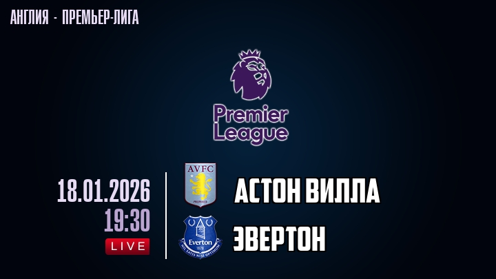 18 января 2026 года, состоялась онлайн трансляция футбольного матча между футбольным клубом Астон Вилла и футбольным клубом Эвертон, проходящего в рамках Премьер лиги Англии.