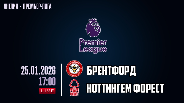 25 января 2026 года, состоялась онлайн трансляция футбольного матча между футбольным клубом Брентфорд и футбольным клубом Ноттингем Форест, проходящего в рамках Премьер лиги Англии.