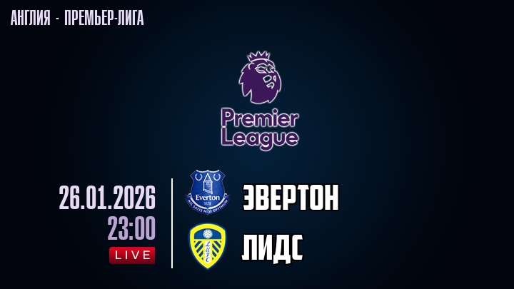 26 января 2026 года, состоялась онлайн трансляция футбольного матча между футбольным клубом Эвертон и футбольным клубом Лидс, проходящего в рамках Премьер лиги Англии.