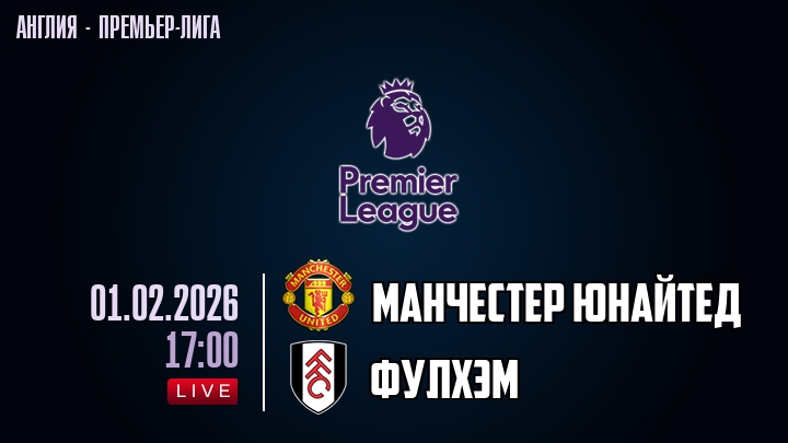 1 февраля 2026 года, мы предлагаем посмотреть онлайн трансляцию футбольного матча между футбольным клубом Манчестер Юнайтед и футбольным клубом Фулхэм, проходящего в рамках Премьер лиги Англии.
