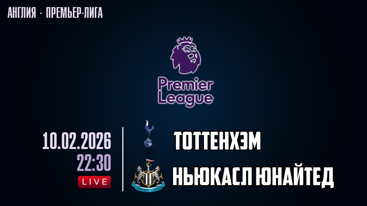 10 февраля 2026 года, мы предлагаем посмотреть онлайн трансляцию футбольного матча между футбольным клубом Тоттенхэм и футбольным клубом Ньюкасл Юнайтед, проходящего в рамках Премьер лиги Англии.