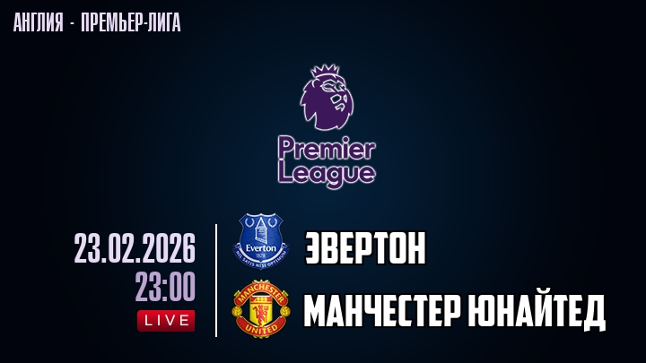 23 февраля 2026 года, мы предлагаем посмотреть онлайн трансляцию футбольного матча между футбольным клубом Эвертон и футбольным клубом Манчестер Юнайтед, проходящего в рамках Премьер лиги Англии.