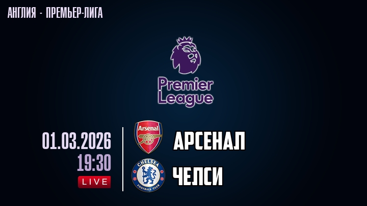 1 марта 2026 года, мы предлагаем посмотреть онлайн трансляцию футбольного матча между футбольным клубом Арсенал и футбольным клубом Челси, проходящего в рамках Премьер лиги Англии.