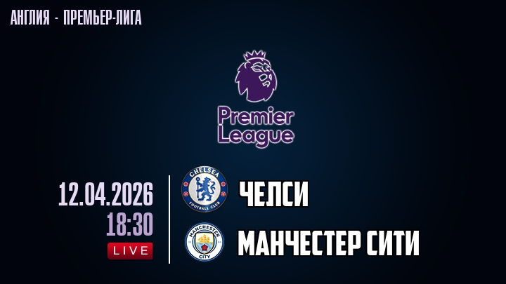 12 апреля 2026 года, мы предлагаем посмотреть онлайн трансляцию футбольного матча между футбольным клубом Челси и футбольным клубом Манчестер Сити, проходящего в рамках Премьер лиги Англии.