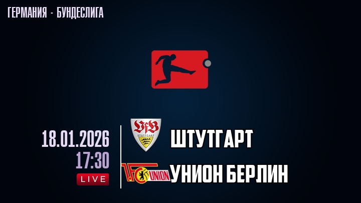 18 января 2026 года, состоялась онлайн трансляция футбольного матча между футбольным клубом Штутгарт и футбольным клубом Унион Берлин, проходящего в рамках Бундеслиги Германии.