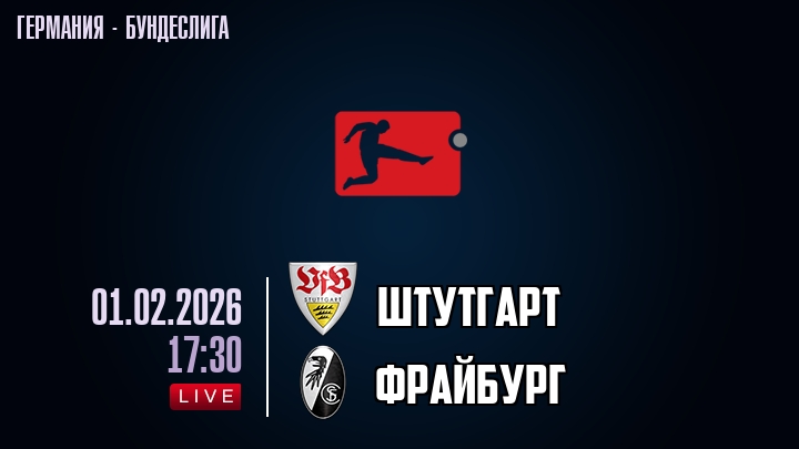 1 февраля 2026 года, мы предлагаем посмотреть онлайн трансляцию футбольного матча между футбольным клубом Штутгарт и футбольным клубом Фрайбург, проходящего в рамках Бундеслиги Германии.