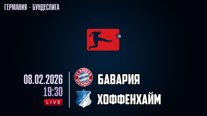 8 февраля 2026 года, мы предлагаем посмотреть онлайн трансляцию футбольного матча между футбольным клубом Бавария и футбольным клубом Хоффенхайм, проходящего в рамках Бундеслиги Германии.