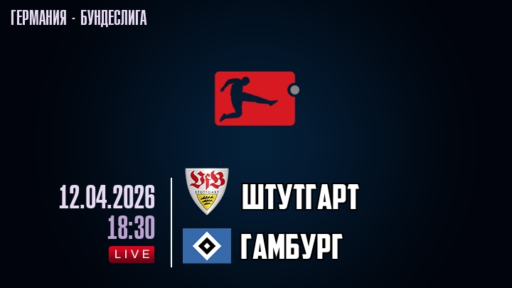 12 апреля 2026 года, мы предлагаем посмотреть онлайн трансляцию футбольного матча между футбольным клубом Штутгарт и футбольным клубом Гамбург, проходящего в рамках Бундеслиги Германии.