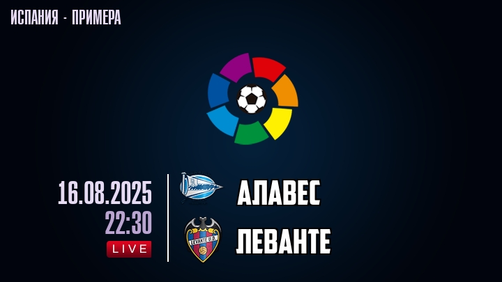 16 августа 2025 года, состоялась онлайн трансляция футбольного матча между футбольным клубом Алавес и футбольным клубом Леванте, проходящего в рамках чемпионата Испании.
