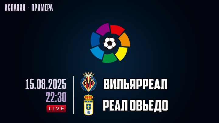 15 августа 2025 года, состоялась онлайн трансляция футбольного матча между футбольным клубом Вильярреал и футбольным клубом Реал Овьедо, проходящего в рамках чемпионата Испании.