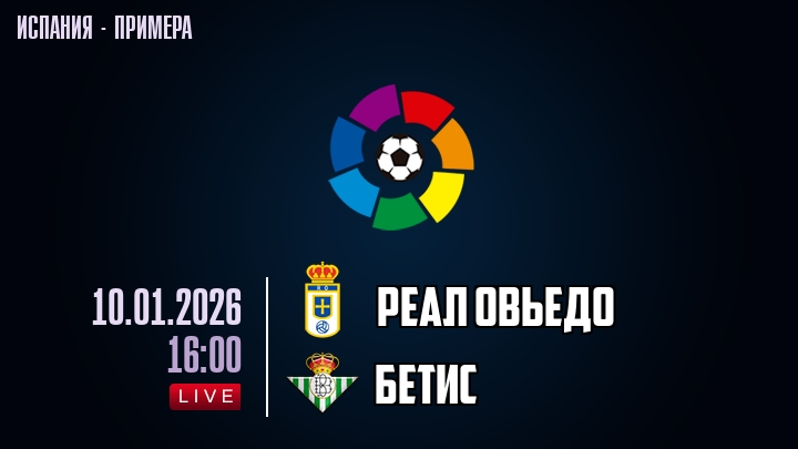 10 января 2026 года, состоялась онлайн трансляция футбольного матча между футбольным клубом Реал Овьедо и футбольным клубом Бетис, проходящего в рамках чемпионата Испании.