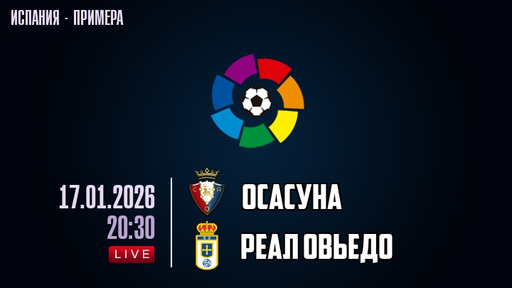 17 января 2026 года, состоялась онлайн трансляция футбольного матча между футбольным клубом Осасуна и футбольным клубом Реал Овьедо, проходящего в рамках чемпионата Испании.