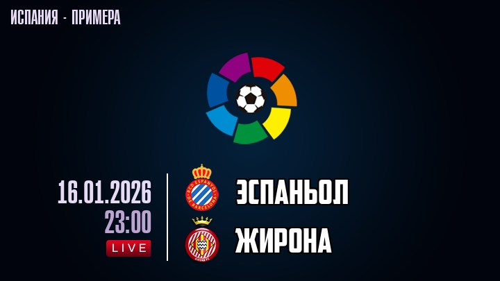 16 января 2026 года, состоялась онлайн трансляция футбольного матча между футбольным клубом Эспаньол и футбольным клубом Жирона, проходящего в рамках чемпионата Испании.