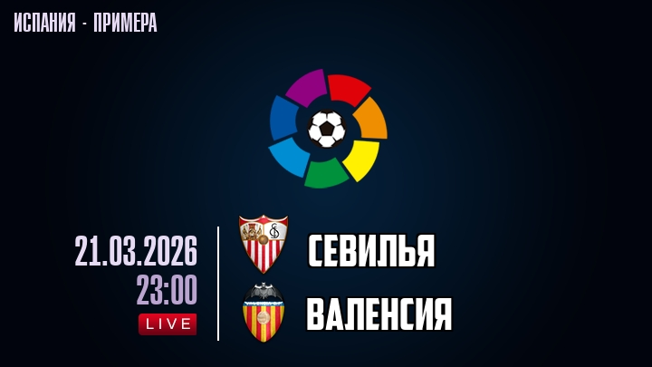 21 марта 2026 года, мы предлагаем посмотреть онлайн трансляцию футбольного матча между футбольным клубом Севилья и футбольным клубом Валенсия, проходящего в рамках чемпионата Испании.