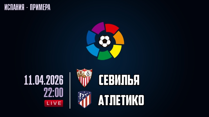 11 апреля 2026 года, мы предлагаем посмотреть онлайн трансляцию футбольного матча между футбольным клубом Севилья и футбольным клубом Атлетико, проходящего в рамках чемпионата Испании.