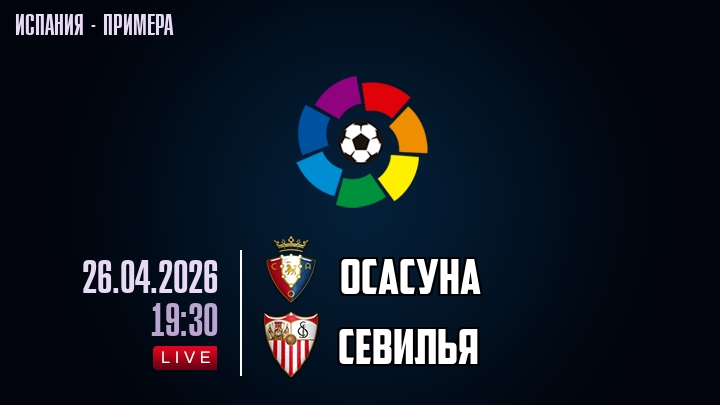 26 апреля 2026 года, мы предлагаем посмотреть онлайн трансляцию футбольного матча между футбольным клубом Осасуна и футбольным клубом Севилья, проходящего в рамках чемпионата Испании.