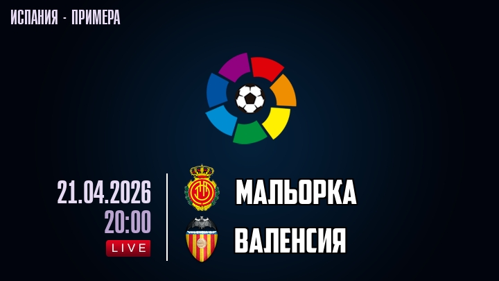 21 апреля 2026 года, мы предлагаем посмотреть онлайн трансляцию футбольного матча между футбольным клубом Мальорка и футбольным клубом Валенсия, проходящего в рамках чемпионата Испании.