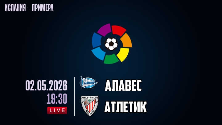 2 мая 2026 года, мы предлагаем посмотреть онлайн трансляцию футбольного матча между футбольным клубом Алавес и футбольным клубом Атлетик, проходящего в рамках чемпионата Испании.