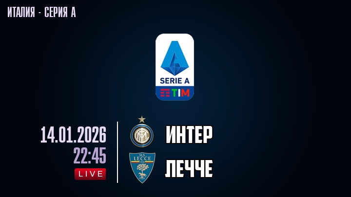 14 января 2026 года, мы предлагаем посмотреть онлайн трансляцию футбольного матча между футбольным клубом Интер и футбольным клубом Лечче, проходящего в рамках Серии А чемпионата Италии.