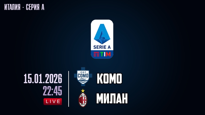 15 января 2026 года, мы предлагаем посмотреть онлайн трансляцию футбольного матча между футбольным клубом Комо и футбольным клубом Милан, проходящего в рамках Серии А чемпионата Италии.